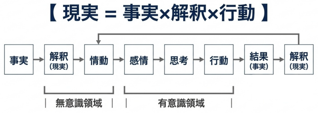 解釈が感情を作り出す。ただし、この最初の解釈は無意識領域での話なので、一発目からコントロールはできません。
